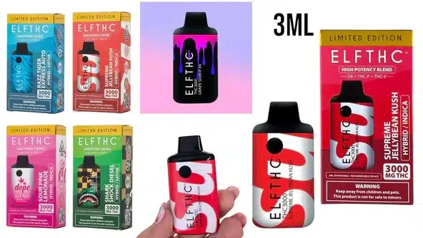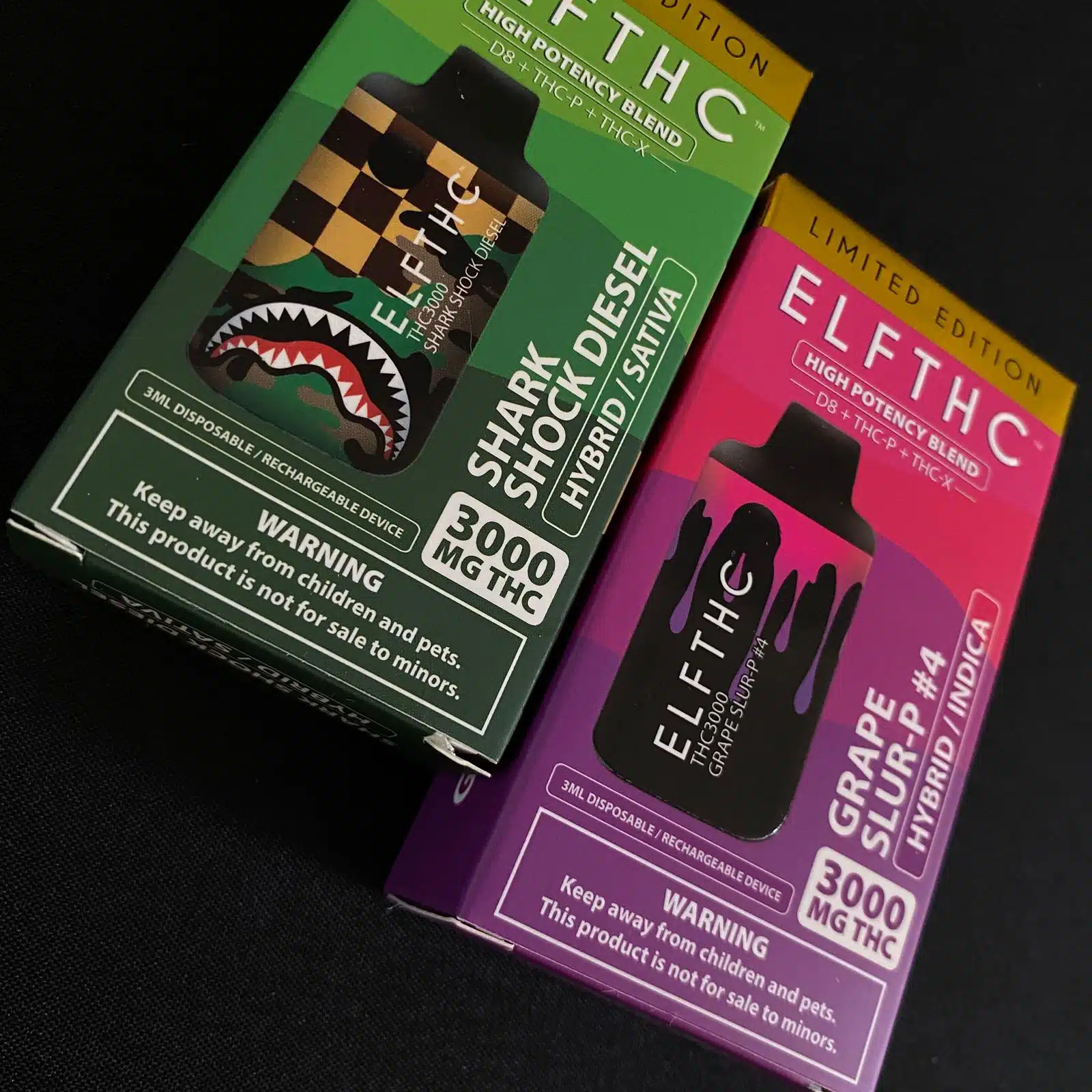 Elf THC 3000 es un vape desechable pre-llenado con 3 gr de mezcla de cannabinoides (Delta-8, THCP, THC-X). Listo para usar, con batería recargable USB-C y sabor por terpenos de distintas cepas. como Alien Bubba Berry, Black Domina X, Grape Slur-P #4, entre otras.